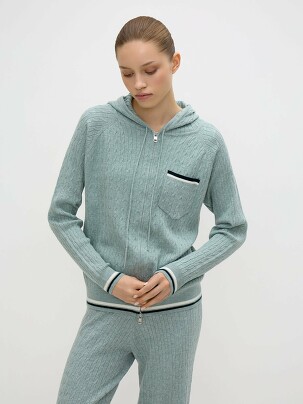 Кардиган с регулируемым капюшоном подходит для ежедневных дел и отдыха на природе. Связали его из шерстяной пряжи плоской итальянской косичкой. В таком дизайне модель смотрится особенно изысканно и фактурно, но без лишнего объема. Полуприлегающий фит в комбинации с рукавами реглан подстраивает изделие под разные обмеры плеч. Модель легко застегивается на двойную металлическую молнию. Стилизуйте с вещами гладких фактур или трикотажными брюками идентичной вязки CONSO.