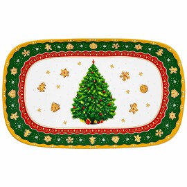 Прямоугольное блюдо Elan Gallery "Новогодняя ёлка" размером 24х15х2,5 см выполнено из фарфора нового поколения new bone china. Благодаря современным технологиям он не уступает другим видам фарфора в прочности, но при этом экологичнее в производстве. Дизайнерская коллекция посуды от бренда Elan Gallery украшена изображением пушистой ёлочки и узором из имбирных пряников и снежинок. Она создаст в вашем доме атмосферу волшебства и подарит праздничное настроение. Сервировочное блюдо украшено ярким праздничным рисунком, можно использовать как селедочницу. Тарелка подойдет для подачи сыра, колбасы, рыбных или мясных блюд. Можно использовать для сервировки сырной и мясной нарезки, бутербродов на праздник, а также овощей и фруктов для угощения большого количества гостей. Эргономичная форма тарелочки позволит разместить на ней любые закуски из мяса или рыбы, например, кусочки сельди. Удобно подавать на сервировочном блюде десерты и сладости. Отличное решение для эстетичной сервировки селёдки, роллов и даже канапе. Фарфоровая посуда отличается от керамической повышенной плотностью. Фарфор не впитывает цвет продуктов и не деформируется от влаги, чему может быть подвержена керамика. Не рекомендуется применять абразивные моющие средства. Можно использовать в микроволновой печи и мыть в посудомоечной машине. Поставляется в стильной картонной упаковке. Подарочное фарфоровое блюдо порадует ваших близких на любой праздник! Благодаря яркой коробочке вам не нужно искать дополнительную подарочную упаковку. Блюдо "Новогодняя ёлка" станет украшением вашей кухни или приятным подарком для любой хозяйки, которая ценит изящную сервировку. В нашей коллекции товаров для дома вы найдёте все необходимое, чтобы встретить Новый год и Рождество в тёплом семейном кругу. В коллекции бренда Elan Gallery можно найти много предметов декора, красивого кухонного и столового инвентаря, а также собрать сервиз на свой вкус.